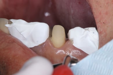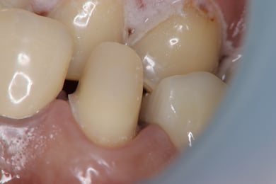 仮の歯を装着したセメントが、歯にも付着していますが、これを綺麗に除去しないと、最終的な歯の接着に影響を与えます。