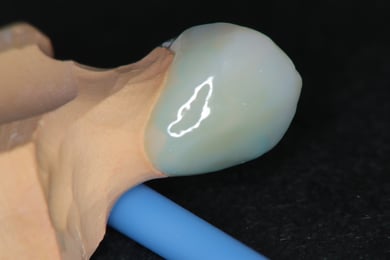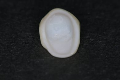 二ケイ酸リチウムを素材とするセラミックス補綴物の内面は、フッ酸で酸処理します。