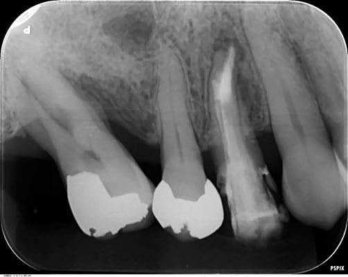 当院では、CTやレントゲンを撮影して悪い像(根尖などのX線透過像)が消失するのを確認してから補綴するようにしています。