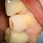 上顎の第二小臼歯遠心隣接面の虫歯。症状が出る前に治療をすれば、治療する側もされる側も楽になります。