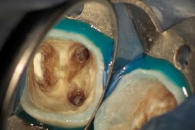 当院の根管治療では、隔壁を必ず作り、仮封剤(仮の蓋)には、レジン(歯と同色)を使用しますので、